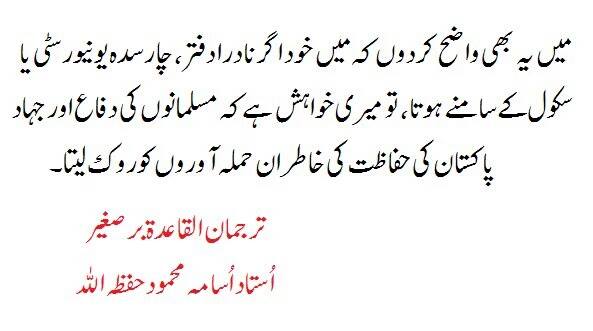 I want to make it clear that if I were in front of NADRA office, Charsadda university or school, I myself would stop those assaulters for the defence of Muslims and Jihad e Pakistan. AQIS Spokesperson Ustad Usama Mehmood Hifzullah