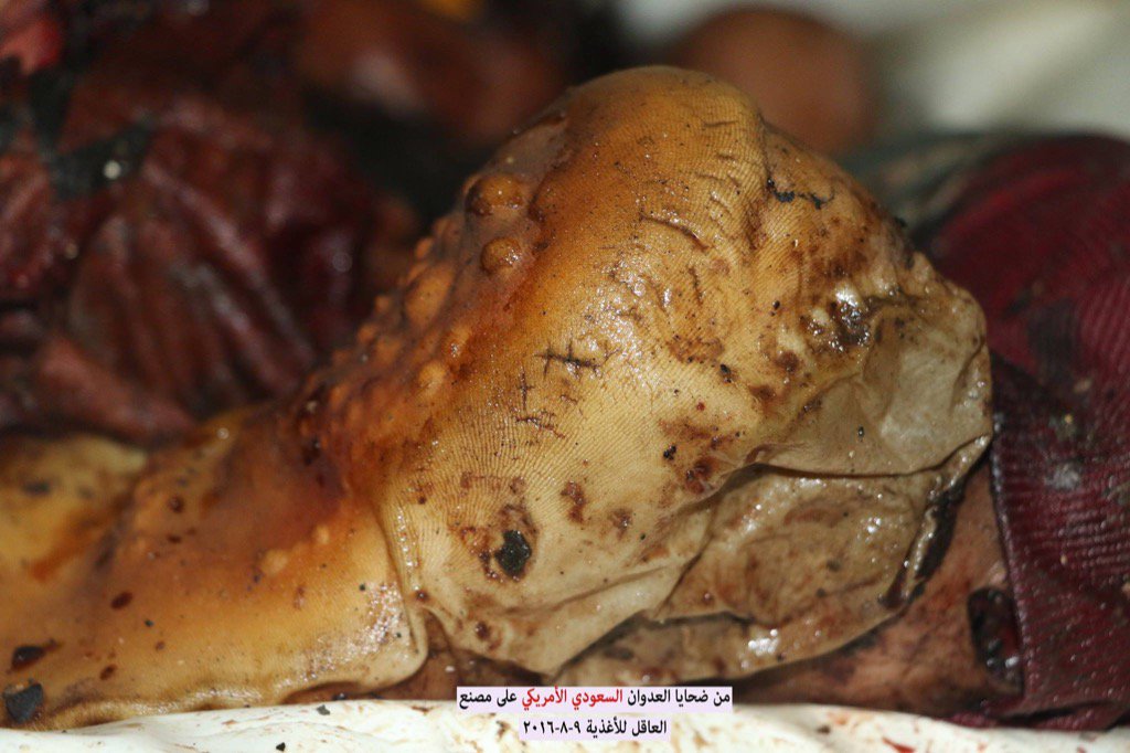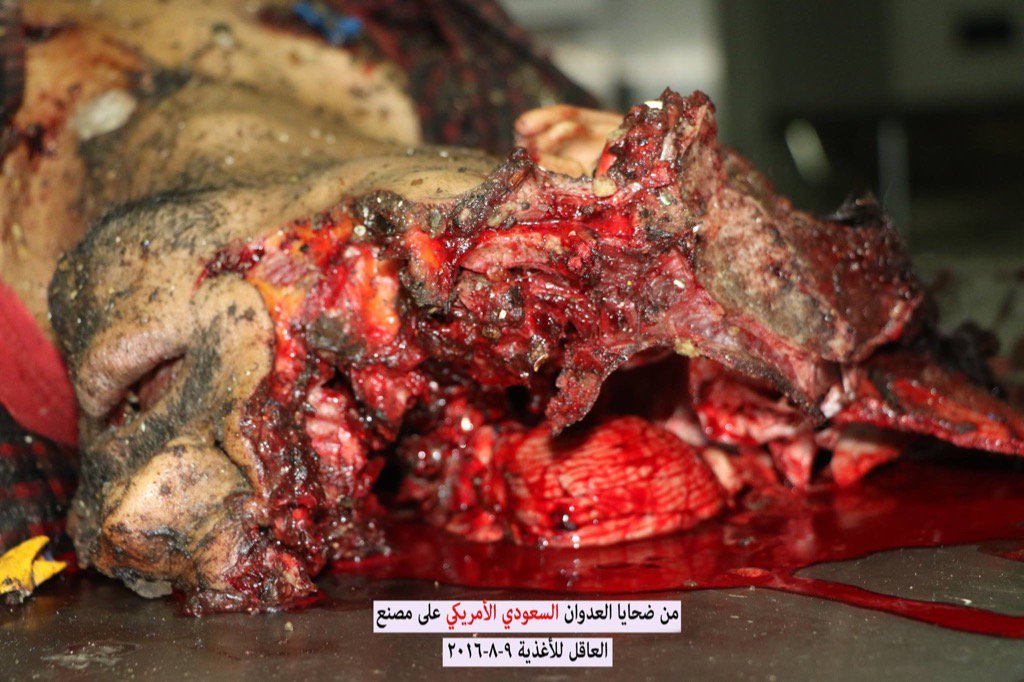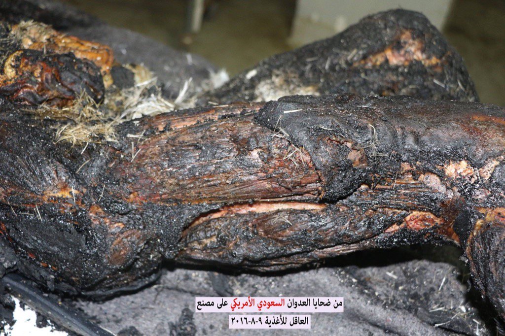 Nasser Arrabyee, a Yemeni journalist and film maker posted a series of graphic photos on Twitter allegedly showing the aftermath of the attack asking “how Americans would expect peace and terror-free US when (President) Obama backs Saudis to kill Yemeni women and kids inside food factories?” Images are as follows:-