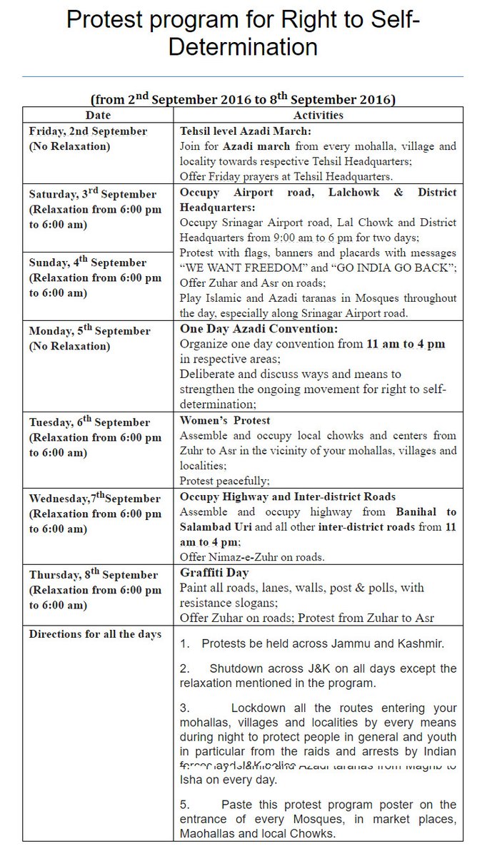 Protest program for Right to Self-Determination (from 2nd September 2016 to 8th September 2016) #YearOfDeadEyes