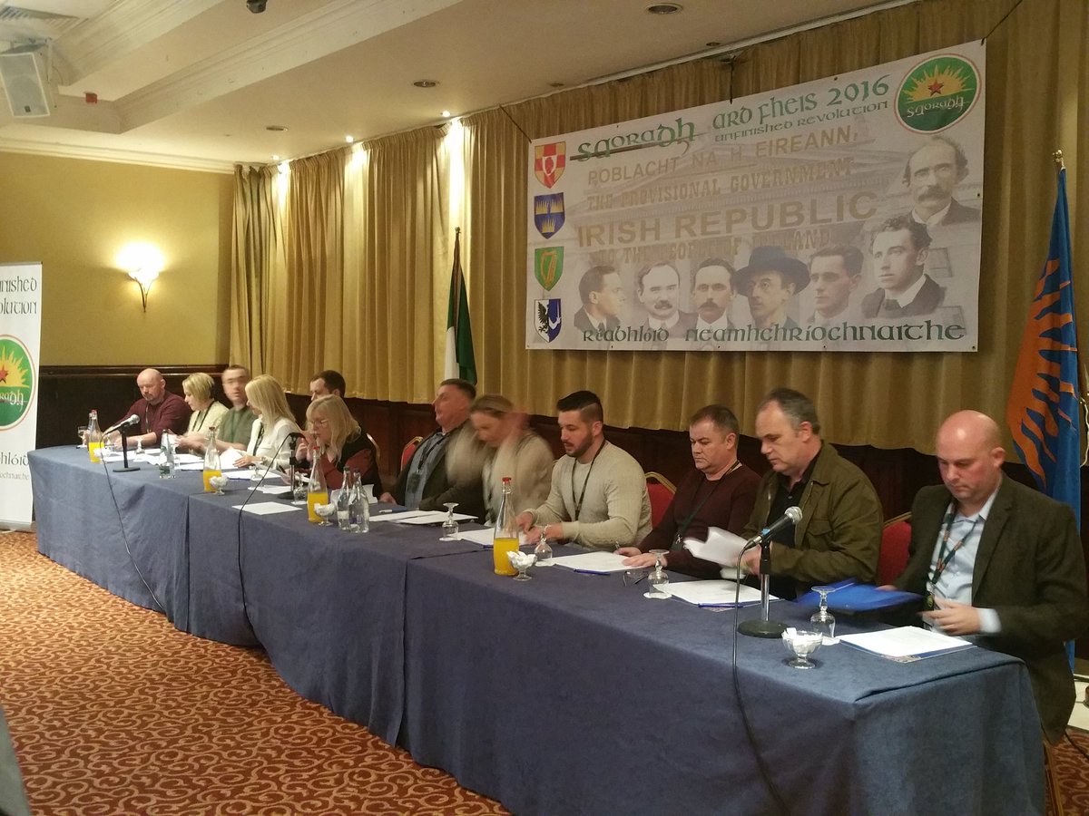 A national executive was elected and motions passed with Davy Jordan elected as Chairperson delivering his keynote speech at the first inaugural Ard Fheis. According to Irish News, Jordan “is currently on bail after being charged with trying to kill a Police Service Northern Ireland (PSNI) officer in a bomb attack in Castlederg in 2008.”