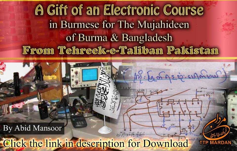 Pakistan Tehreek-e-Taliban (TTP, Mardan) have posted of a “gift” of a new electronic course for mujahideen in Burma (also known as Myanmar) and Bangladesh. The statement comes via Abid Mansoor. The course “Jihad Electronic in Burmese” is 112 pages long, handwritten in different colour inks on lined paper with a series of drawings and diagrams. The posting on social media drew 40 “shares” on Facebook alone since it appeared on 16th January.