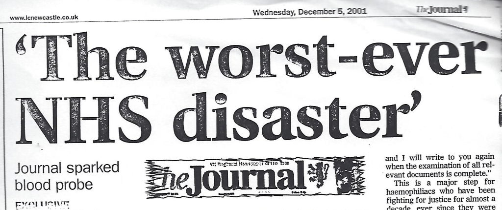 Headlines from award winning Bad Blood campaign set up jointly with Carol Grayson, her husband Peter and the Newcastle Journal that utilized many of the documents Grayson discovered through her research, later falsely claimed by Jason Evans