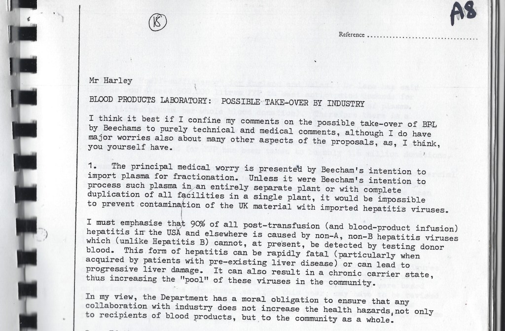 I have no problem with you using documents I released into the public domain but it would be helpful if you could actually highlight who put them there. Successive governments have tried to get away with murder because they were able to send Sir Brian Langstaff the copies I had returned (not the originals) and as the Dept of Health lawyer destroyed the original letters of return thought they had got away with it. Fortunately I kept copies. Unlike some campaigners I have never received funding for my multi awarded research but I do like to ensure a true history of the Contaminated Blood scandal is reported. Can you imagine how many haemophiliacs have died without justice since I FIRST presented the Beecham take over letter to government, over 20 years ago, it’s appalling! Colette was with me at those meetings!