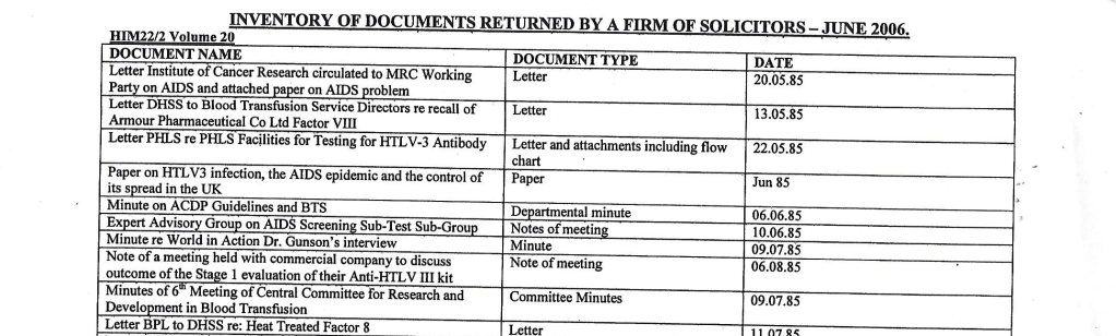 Lord Jenkin and I had discovered government files were being destroyed at a high rate and feared there would be little left when we finally got a public inquiry so we set about saving everything at NA Kew and other government repositaries on blood policy and authorities, haemophilia, HIV, hepatitis C, v CJD etc. Jason is now able to write his very many FOI access requests for all the documents we saved yet again no acknowledgment and a continuation of distorted Timelines of discovery by Jason from 2017 onwards in the media.